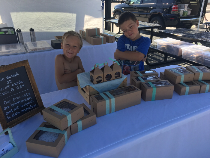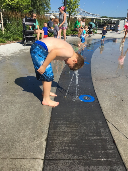 Saturday we had another market - we all went to this one! And we almost sold out of treats again! It was hot, so I was able to play on the splash pad to keep cool. My new buddy Ray was there, and we didn't get hollered at too much to stop making mischeif.
