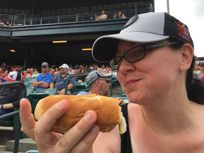 Mommy having her hot dog.