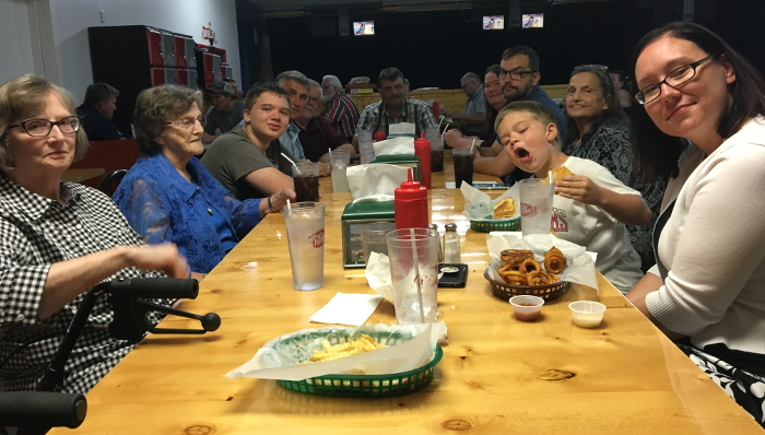 At lunch wth everyone.