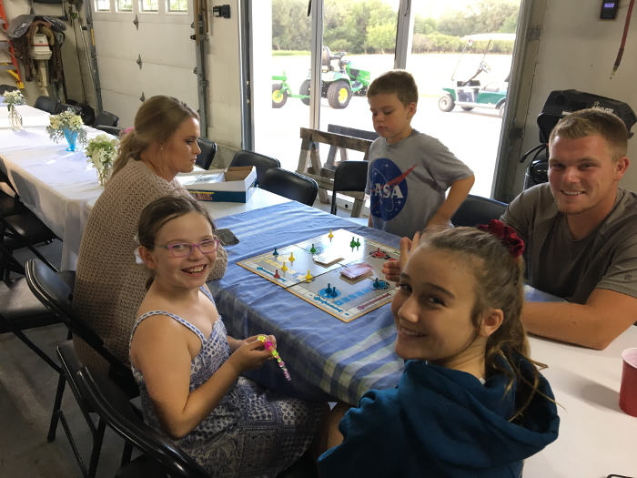 Playing Sorry with Bay and some others at the party.