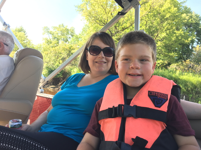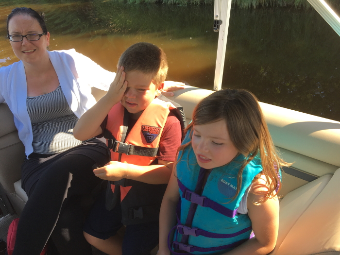 On the boat with Mom and Bay. It was hot.