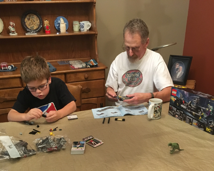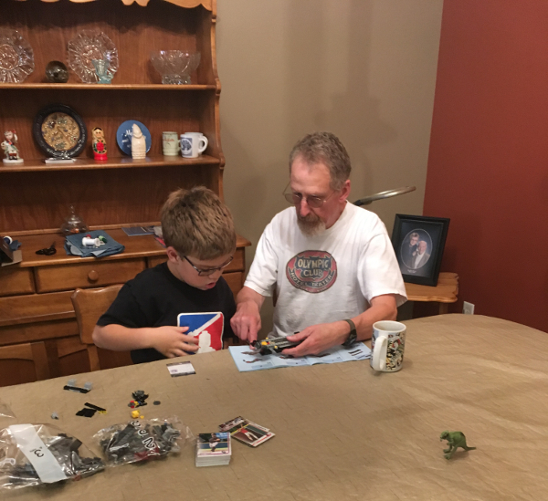 Working on some LEGO with Grandpa Kevin.