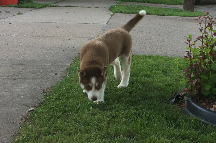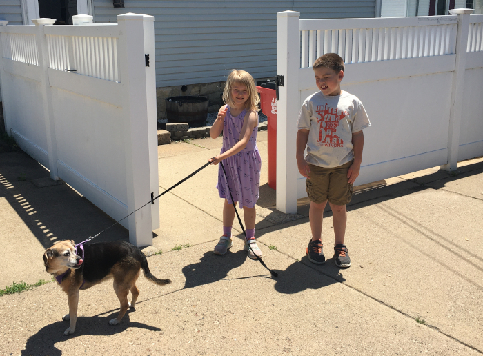 Daddy and I have been going for walks in the morning - and sometimes we are lucky and get to see the new puppy across the street. Her name is Juliet.