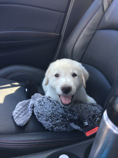 Indy went to his first vet visit. He wasn't scared until he came back outside. He had to ride up front with Daddy.