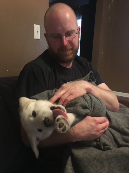 Daddy being silly and pretending Indy is a human baby.