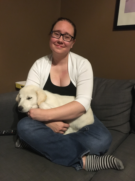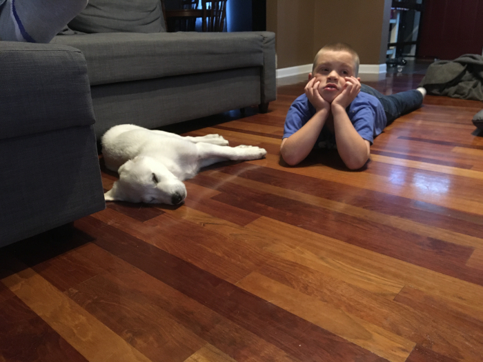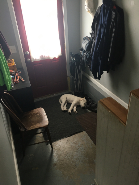 Sleeping by Dad's shoes, waiting for him to come home from work.