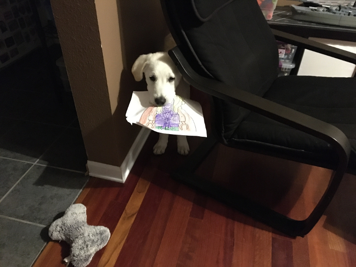 Indy grabbed one of my coloring sheets and he wouldn't give it back.