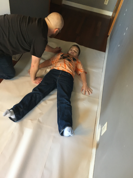 We're also studying anatomy, so we made an outline to draw all my bones.