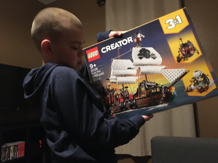 On Saturday, Mom sharpened all my pencils with my new electric pencil sharpener, Dad and I built the pirate ship, and we watched some Grizzly and the Lemmings.