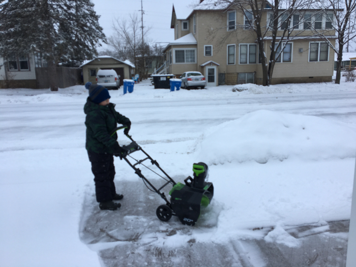Back home on Sunday, we had some snow to clear. I got to use the little snowblower that Grandpa gave me because he no longer needs it.