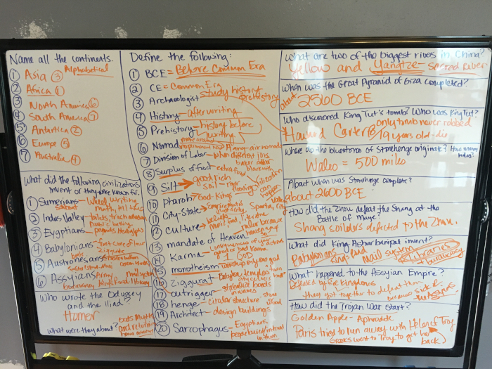This is what the white board looks like when Mom and I do some review of what I've learned.