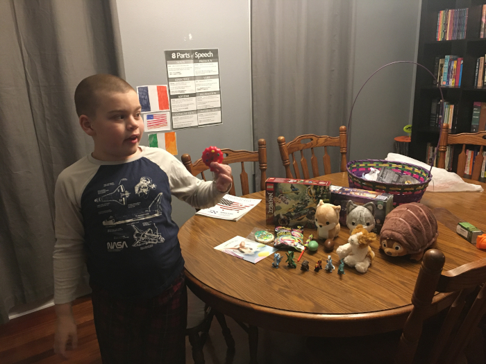 When we were done at the flag store, we went to see GG and Grandpa Kevin. They had some Easter presents for me from them, and from Auntie Kara and Uncle Josh. I also got to see Max and Abby.