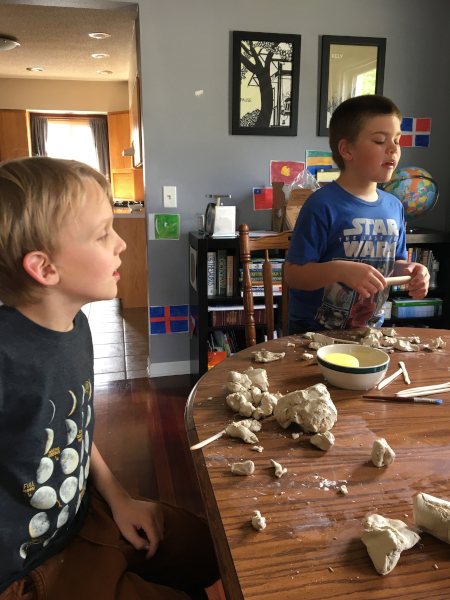 Atticus came over again. This week we worked with clay, played with LEGO, and had some Mario Kart races.
