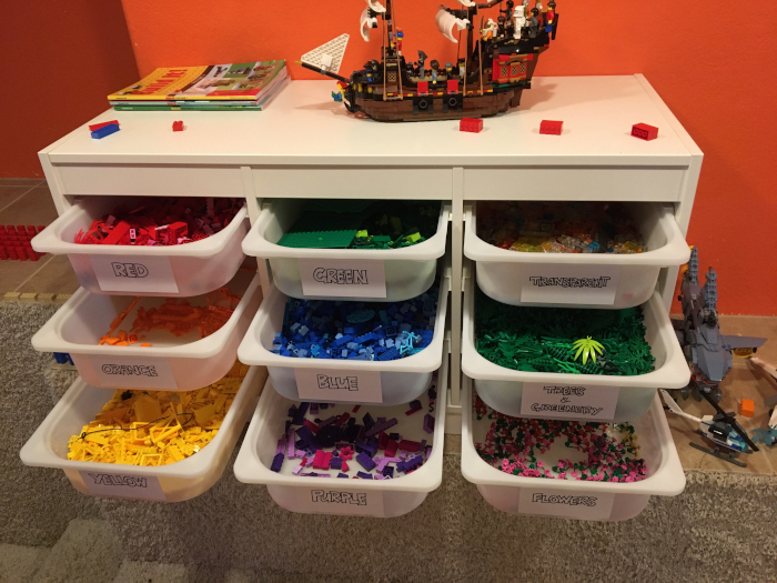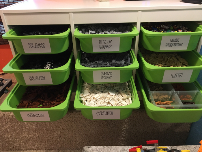 While we were away on Saturday, Mom cleaned the house - and she did a lot of LEGO sorting. I mean, a lot of LEGO sorting. She finished on Sunday, and Dad and I moved the tubs back downstairs and labeled the tubs. Thanks, Mom!