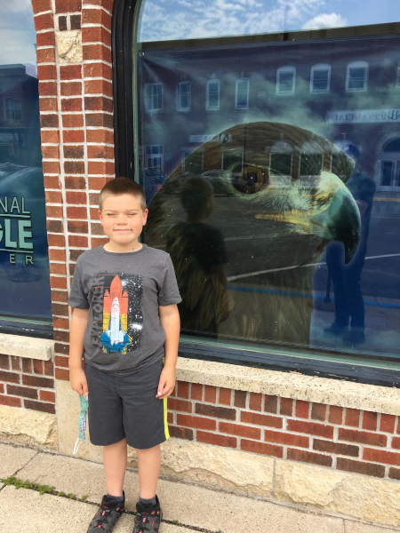 Saturday we took a drive to the Eagle Center to turn in the feather we found a couple of weeks ago. If you didn't know, possessing an eagle feather is illegal, and you can be fined up to $250,000. If you see one, leave it where it is. This was our first time going there since Donald died, so I had Dad take a picture with Donald's picture.