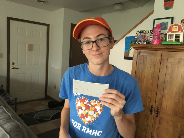 Sawyer with his check.