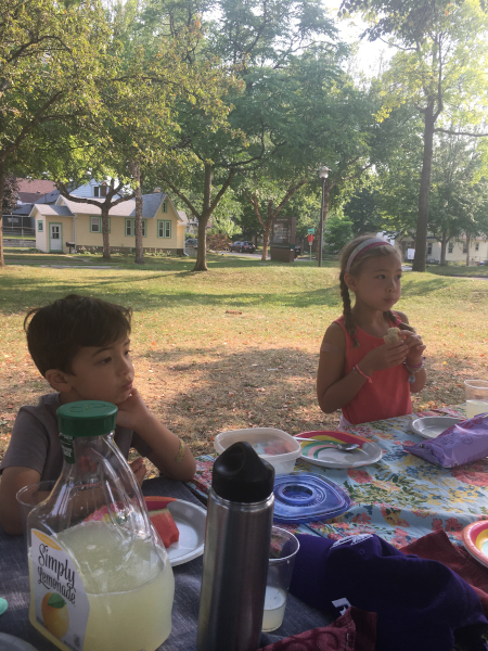 Not much happening this week, other than watching All Hail King Julien every day with Mom and Dad. The big event was driving up to watch Freya's softball game. We picked up GG on the way, and we had a picnic in the park before the game started.