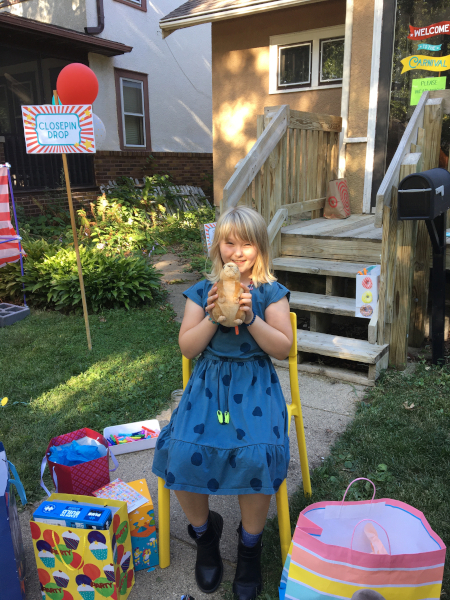 Freya with Kara and her new LEGO set from us.