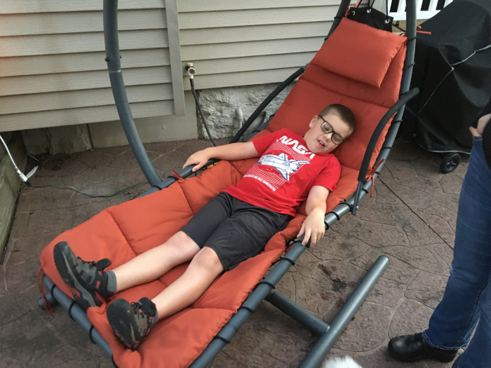 Testing out the hammock chair.