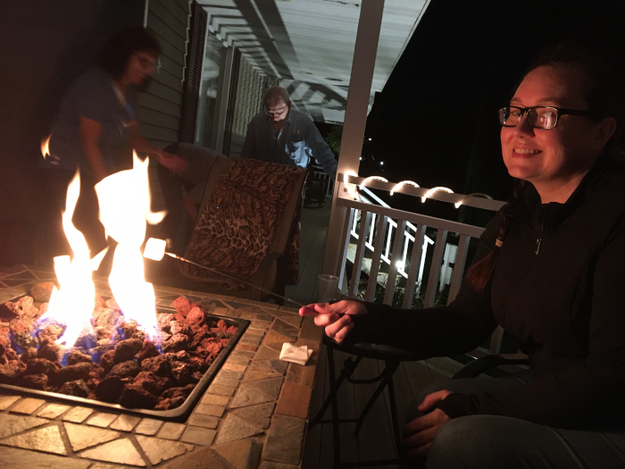 On Saturday our friend down the street invited us over to watch some movies on her garage (she has a projector). We had a good time, despite the bugs, and I discovered I love s'mores (after Mommy forced me to try one). I also made a new friend, Daniel, whose Grandma and Grandpa live just down the street from us.