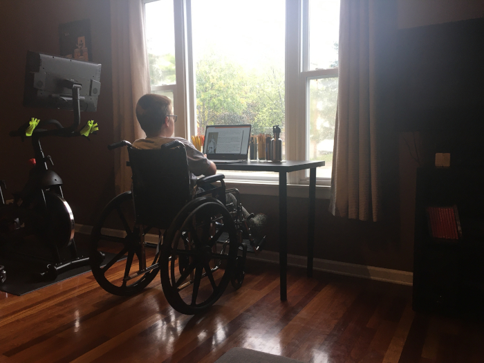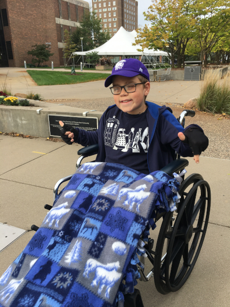 Not much going on this week. We went to get flu shots on campus, and we walked (well, I rolled). We saw a really cute little puppy while we were there, and we got some snacks.