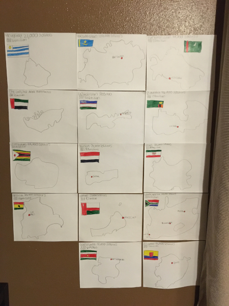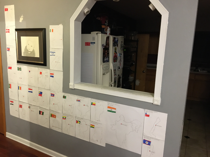 This week was all about maps and flags. I am covering the walls with my project to draw all the countries of the world and their flags. This week I did 167 countries. Here are the pictures: