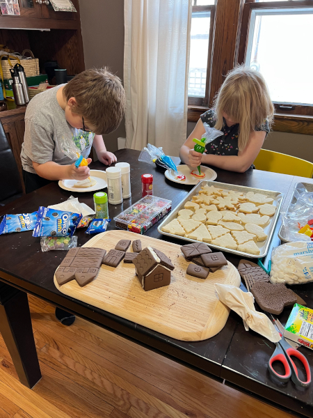 Dad drove Mom and I to meet Kara and Freya at GG and Kevin's house. Then we went to Freya's and Dad went home. Dad was waiting for a package to be delivered - our new XBOX. We did some fun Christmas stuff for the day, like decorating cookies and watching Elf.
