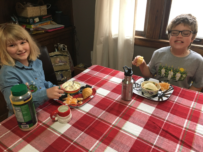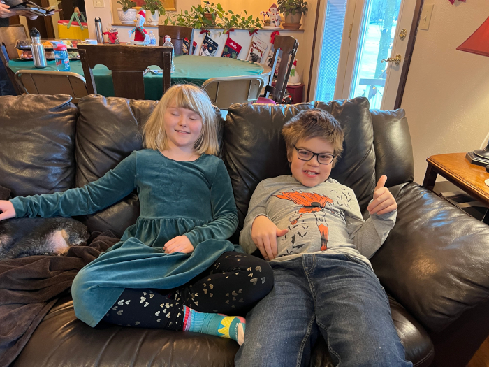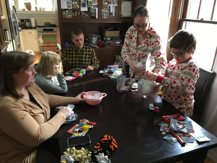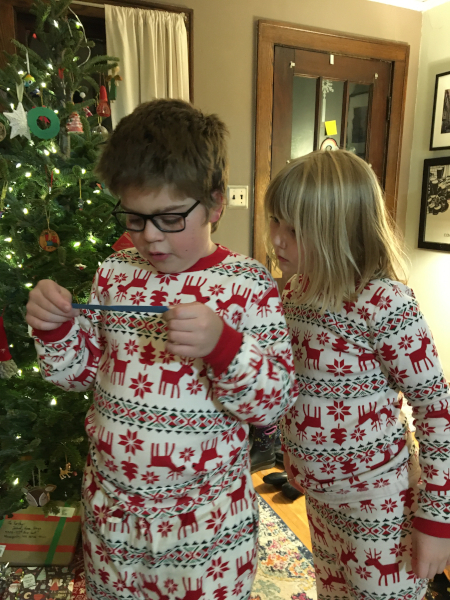 Friday we stayed home and played around. Dad got there around 4:00 PM, and we got the pajama party started, ate some food, and opened presents.