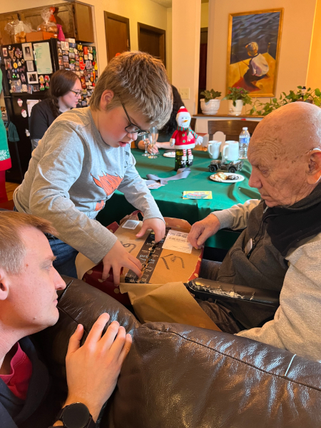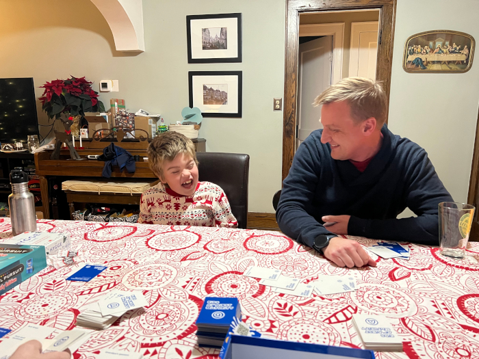After the Christmas party we went back to Freya's and played some games. We played Trivial Pursuit and Kids Against Maturity. We were laughing so hard that Josh cried and Mommy thought she was going to pass out because she couldn't breathe. After Freya and I went to bed, Mommy talked Dad into playing a game he had never heard of before (and he was terrible at it).