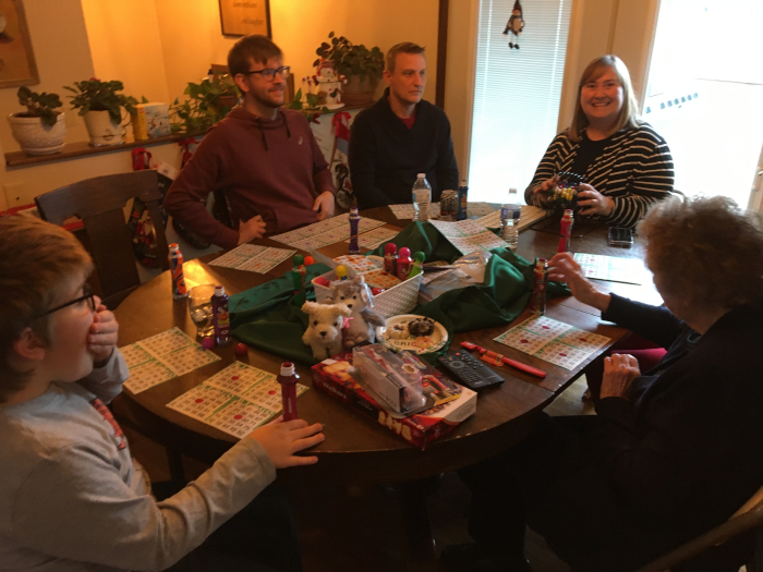 We were up relatively early to see what was in our stockings - as it turns out, they were overflowing with presents. We spent some more time opening little presents and then scratching lottery tickets. About mid-morning we went to Nancy's house for the Christmas party. We did White Elephant gifts, opened presents, played BINGO, and ate a lot of cookies.