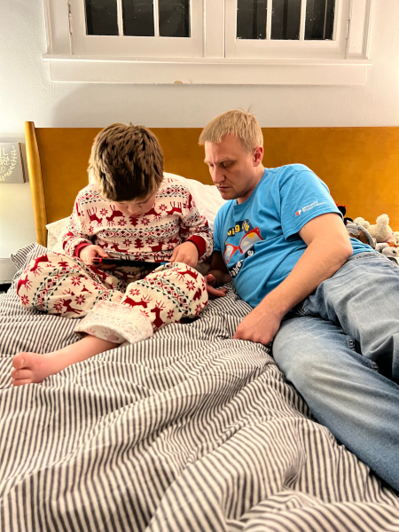 I wanted to stay another night, so Mom and Dad went home without me. I was missing them at bedtime, so it was a little hard to go to sleep.