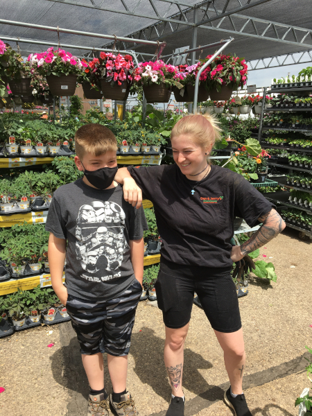 On the weekend we worked on getting the garden set up. We all moved dirt and filled up the beds Mom and Dad built last weekend. Then we went to get some plants to put in the ground. While we were there we saw Angie and Kyra.