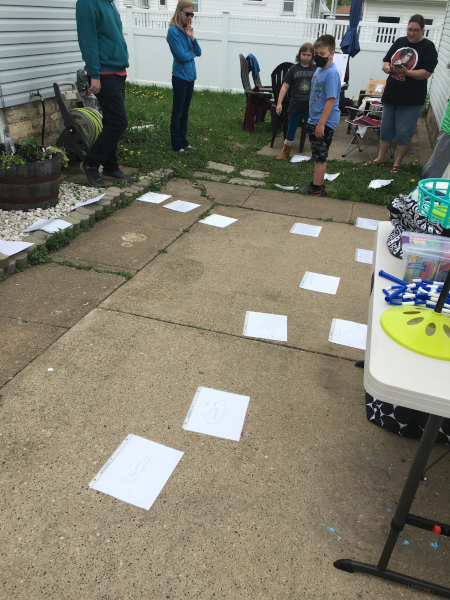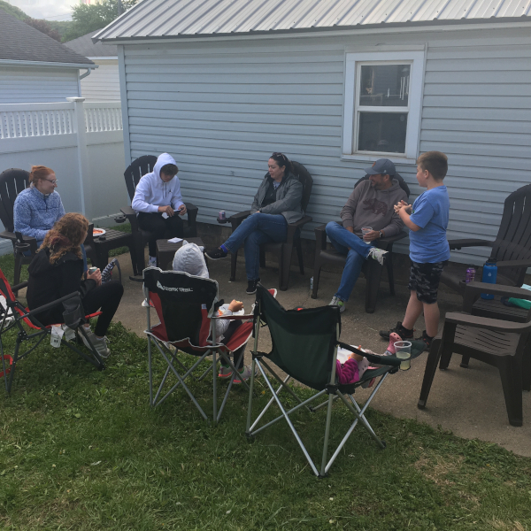 Sunday we had some people over: Sawyer and Angie; Megan, Josh, Lucie, and Clara; Tabitha, Dustin, Addie, and Aiden. We played basketball and bean bag toss and ate outside, even though it was a little chilly. Mom made ravioli bake and garlic bread, almond cake, and brownies. Other people brought things to share.