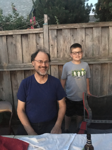 Daddy and Joe talking bikes with Kevin. Oh, and a nice sunset.