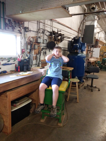 I also went to Janice and Jerry's this week. Grandpa Al wanted to help Dad out by using Jerry's table saw to cut the door jamb extension for the bathroom. I got to see some tractors and hang out in the shop.