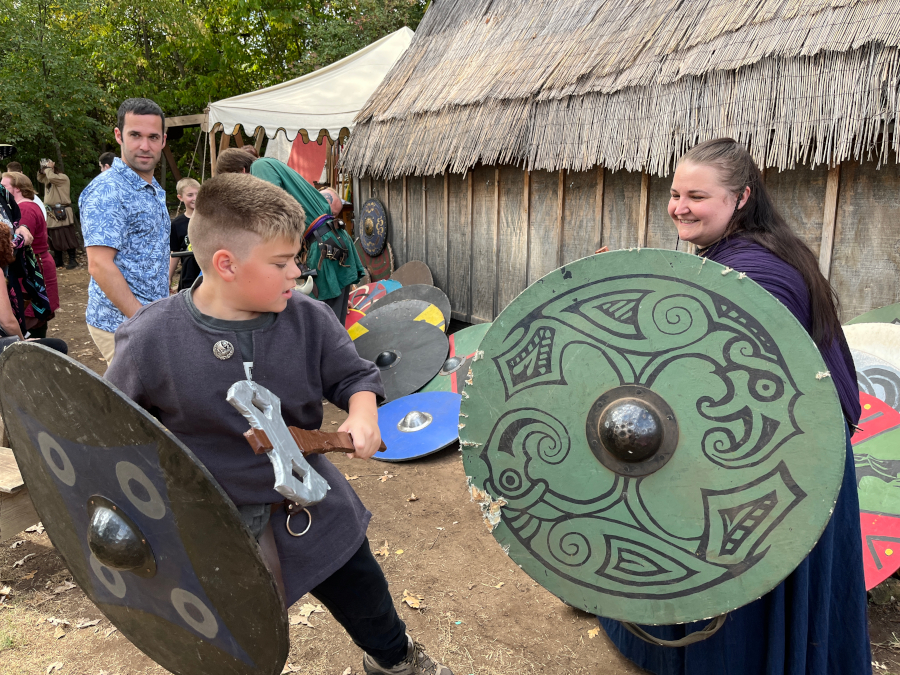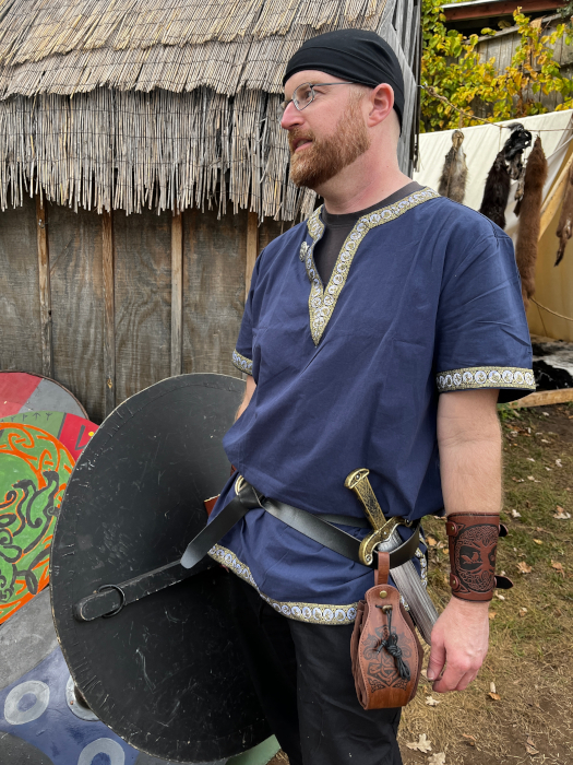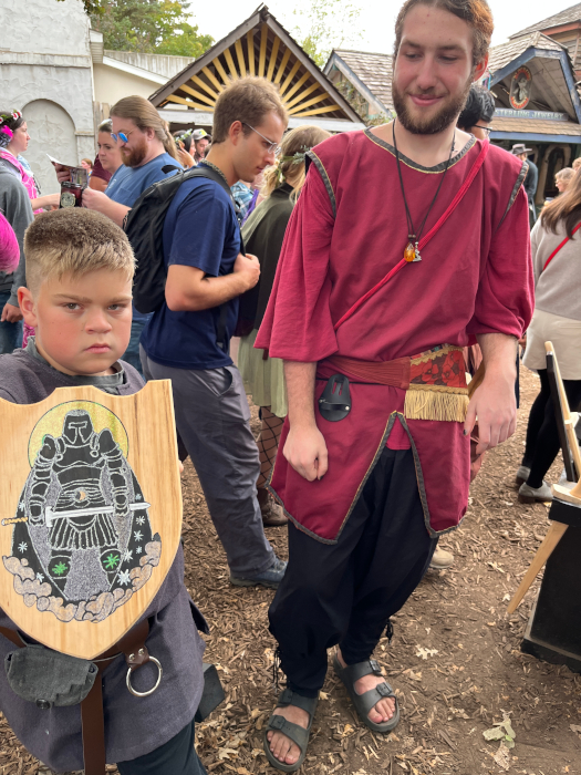 My new shield, with the guy who painted it (I also got a hammer and a sword).