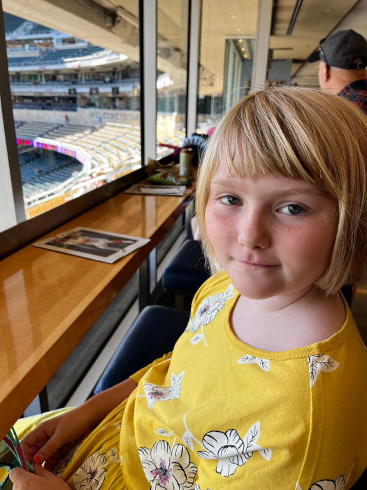 After church it was time for baseball! Kara dropped us off at the stadium early - and it was a perfect fall day to see a game.