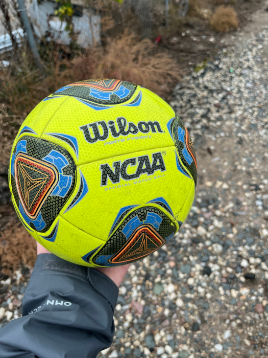 Dad found a soccer ball by the train tracks and donated it to the Recess collection.