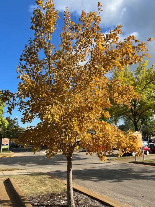 The leaves are turning. Dad got this picture of the tree right outside the window by his desk.