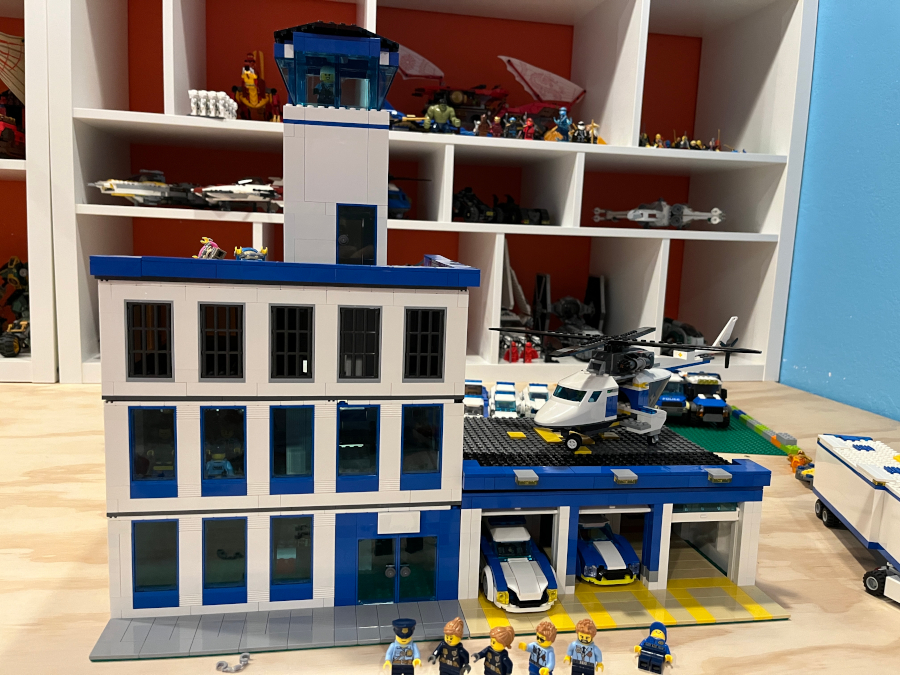 We stayed home this weekend, as Grandpa Al and Grandma Wynne are recovering from COVID. Dad and I worked on LEGO projects. We combined my two police sets, plus some other pieces, into a really big police station that can connect to out modular buildings. It was fun - and I am so excited to play with it.