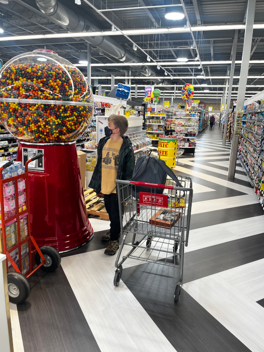 Mom and Dad didn't take a lot of pictures this week. We did all the usual stuff: school, Recess, LEGO. But I also went to visit my grandparents (all 4), and Dad built one of his old Star Wars LEGO sets for me to put in my display, and we had some friends over for supper. But all I have for pictures is a few of Mom and I visiting the new HyVee before we went to LEGO Club on Monday, and a picture from Recess on Tuesday. So it goes.