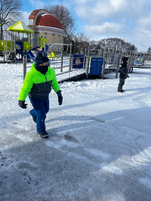 This week we cancelled Recess for the first time. We had freezing rain on Tuesday afternoon that eventually turned to snow. We got to play in the snow on Wednesday, but it was cold. Thursday was nicer.