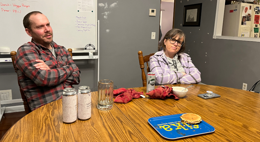 Paul and Missy trying to not be the one to take the last stroopwafel. Just kidding - there were lots more!
