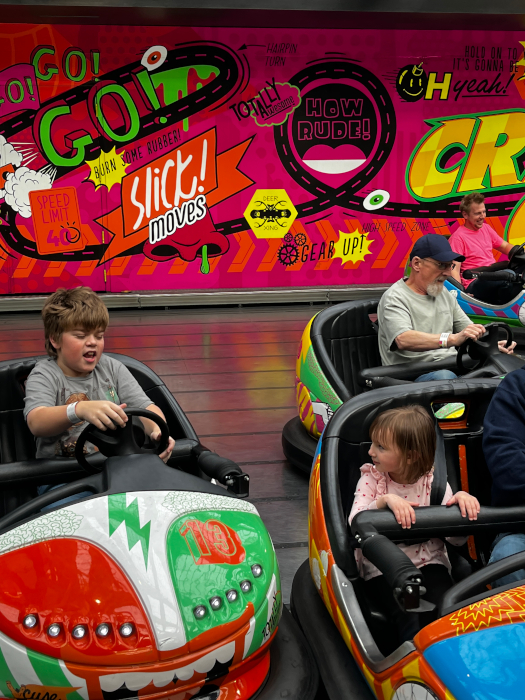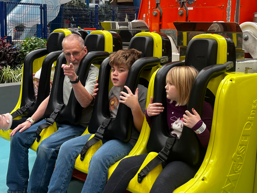 On Friday we picked up Grandpa Kevin and went to meet Kara and Freya for some fun. I got some presents, I got to go to the LEGO store, and we went on rides. A lot of rides.