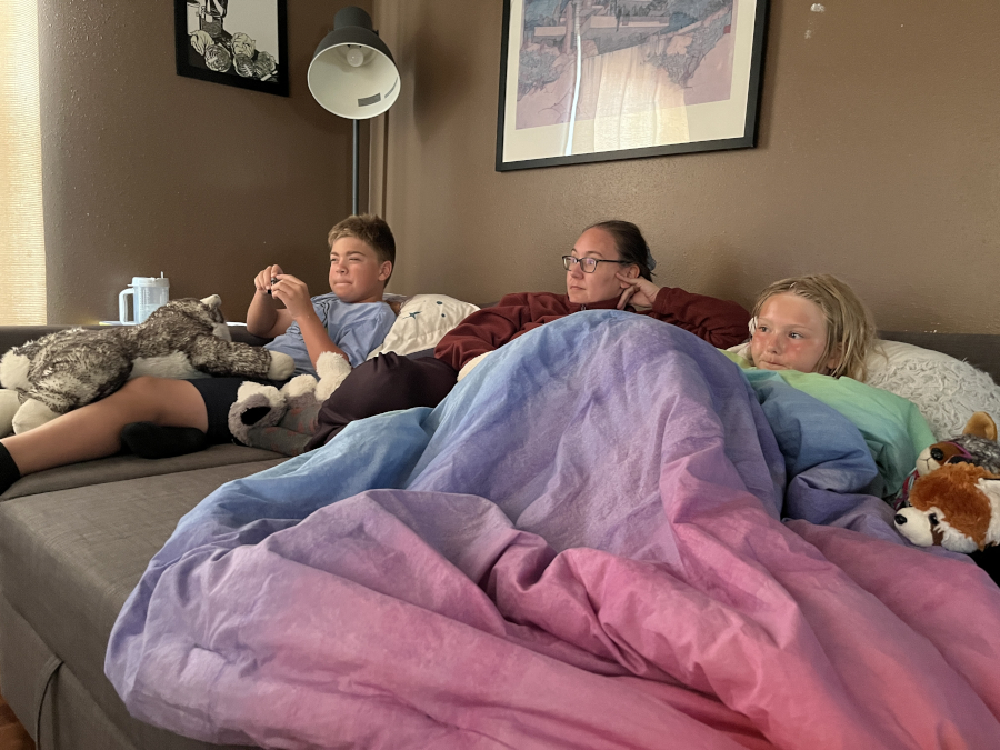 Me and Freya - watching Soapy play Tears of the Kingdom while we had breakfast.