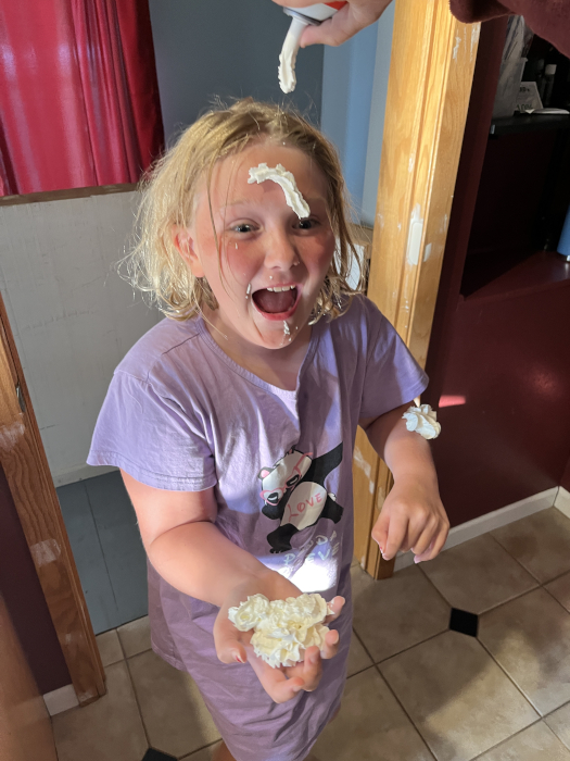 Freya wanted some extra whipped cream....