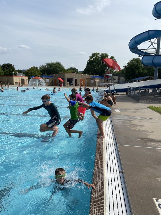 Day 4 was another swimming lesson, another lunch at Culver's with GG, Recess at the pool again, and our movie was Super Mario Brothers. Mom made pancakes for supper!