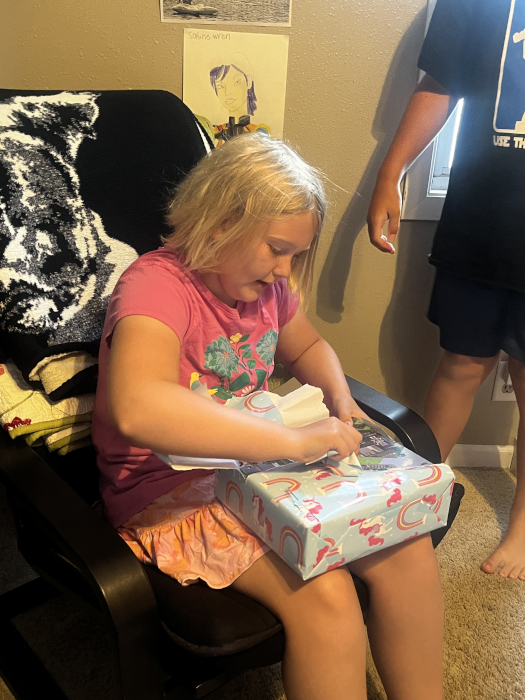 Freya opening one of her presents.