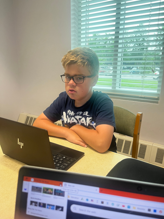 On Sunday, Dad and I went to Grandma Wynne and Grandpa Al's. Grandma got a new computer, so Dad set it up for her, and I went to the dog park with Grandpa and Loki. I also had to go get my new glasses, which are much nicer than my old ones. And then we went home.