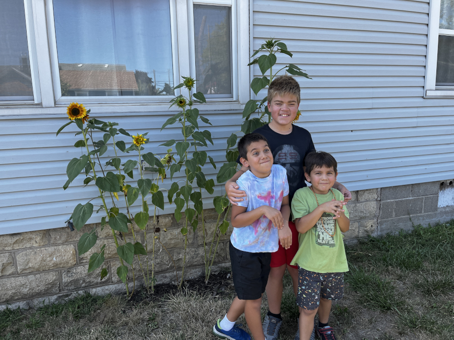 Me with Elijah and Neimiah - they came with their mom to get some free tomatoes.